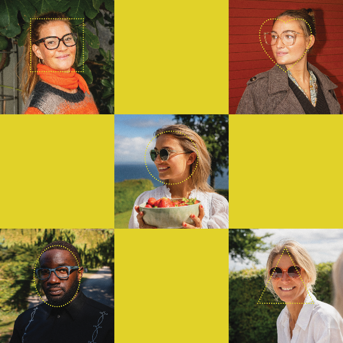 Når det er sagt så husk, at din ansigtsform blot en detalje, der aldrig må veje tungere i dine overvejelser end din personlige stil og smag. At finde et brillestel, der matcher din ansigtsform, er ikke eksaktvidenskab og slet ikke en lov, du absolut skal følge! Men det kan være en god ledetråd – og i øvrigt et underholdende element – i udvælgelsesprocessen.